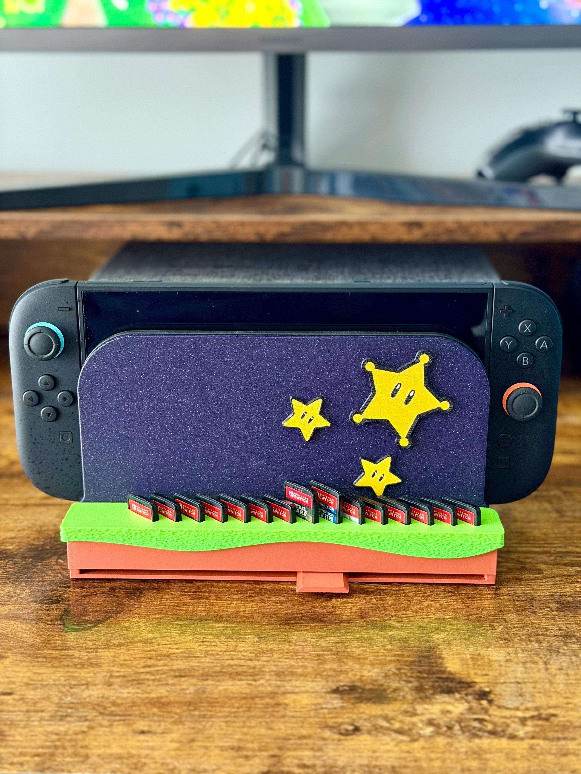 Switch 2 Dock Cover With Pop-Up Game Storage (Holds 15 Cartridges) | Mario Galaxy Inspired