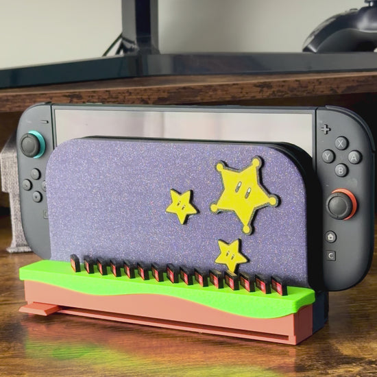 Inspired by the playful, star-filled feel of Mario Galaxy, this Switch 2 dock cover adds a vibrant galaxy-sparkle look with textured “grass” detailing, while helping protect your dock from dust and light scuffs. The integrated pop-up cartridge storage keeps your favourites organised and within easy reach.